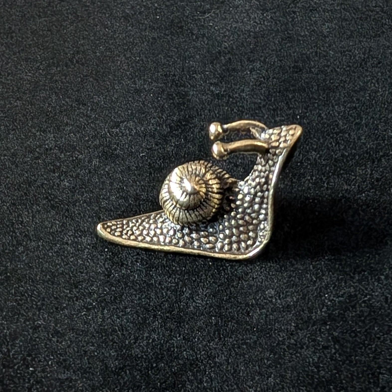 Adorable little garden snail to keep you company on your desk! This one has a slightly smaller shell (relative to its body) than its brass bretheren.
