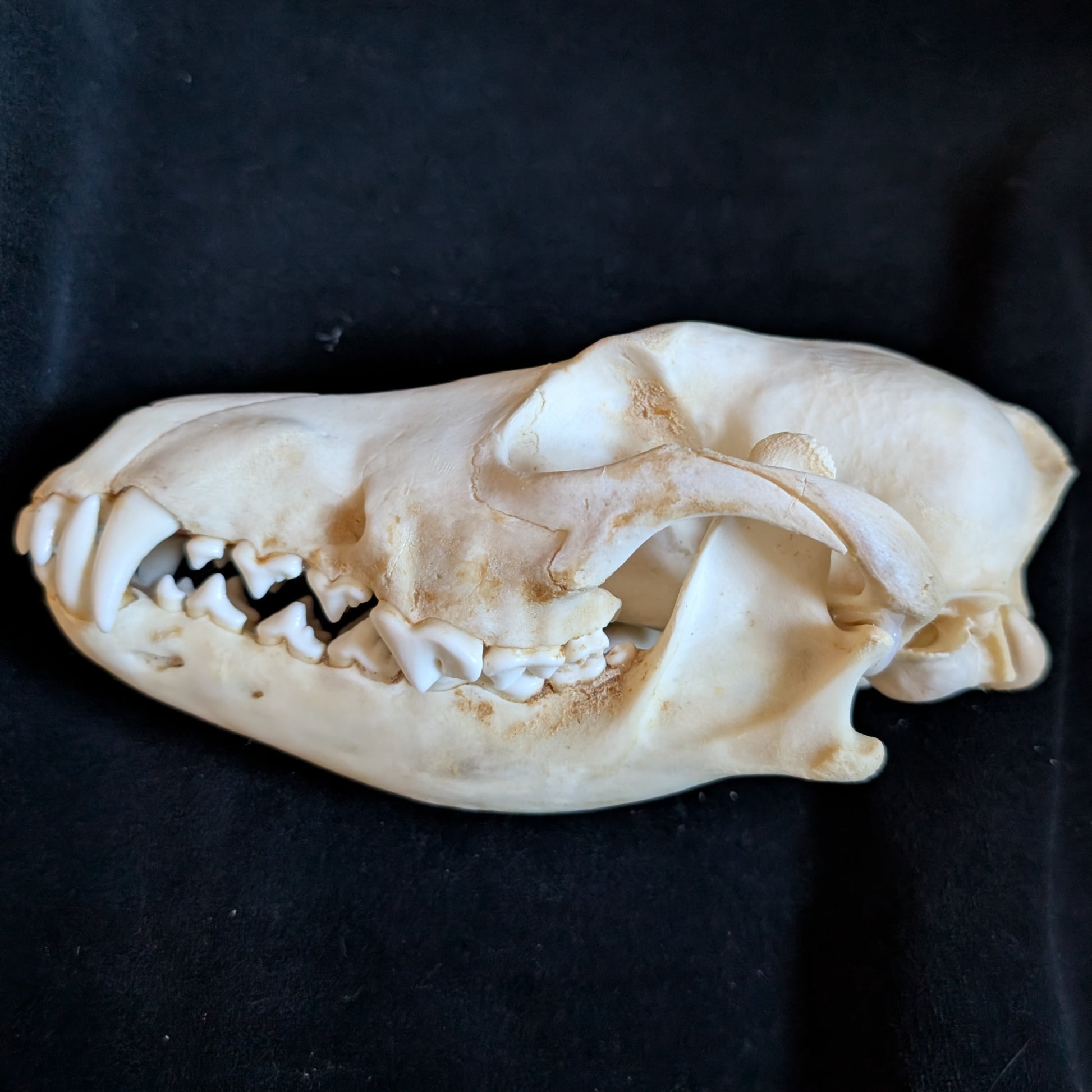 These real coyote skulls are obtained by native tribe subsistence hunters.