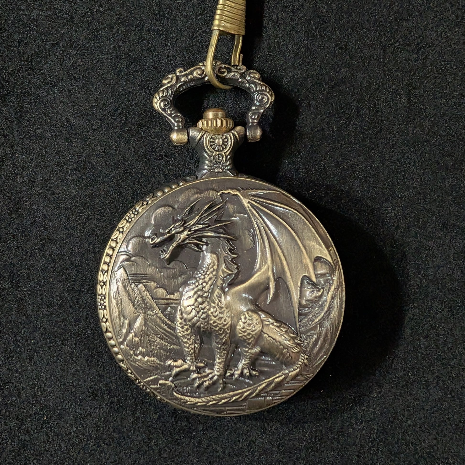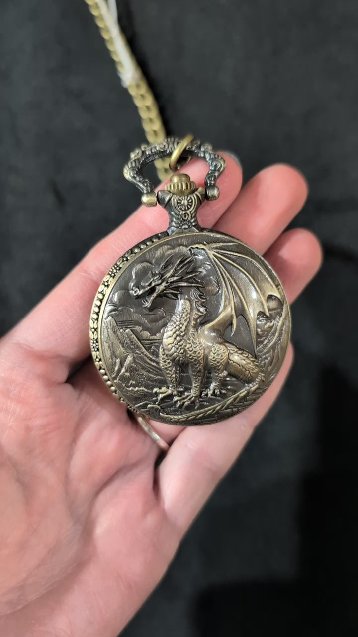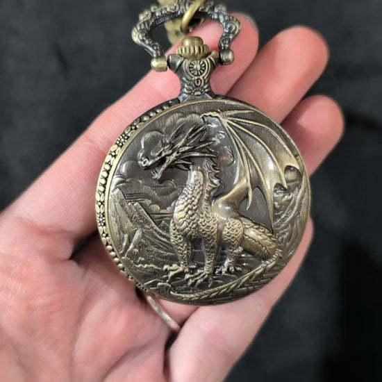 Bring the game of chance with you wherever you go with this awesome pocket-watch case dice box! Contains 6 miniature dice ranging from D4 to D20. Both case and dice are made of brass. A great gift for the Dungeons & Dragons player!