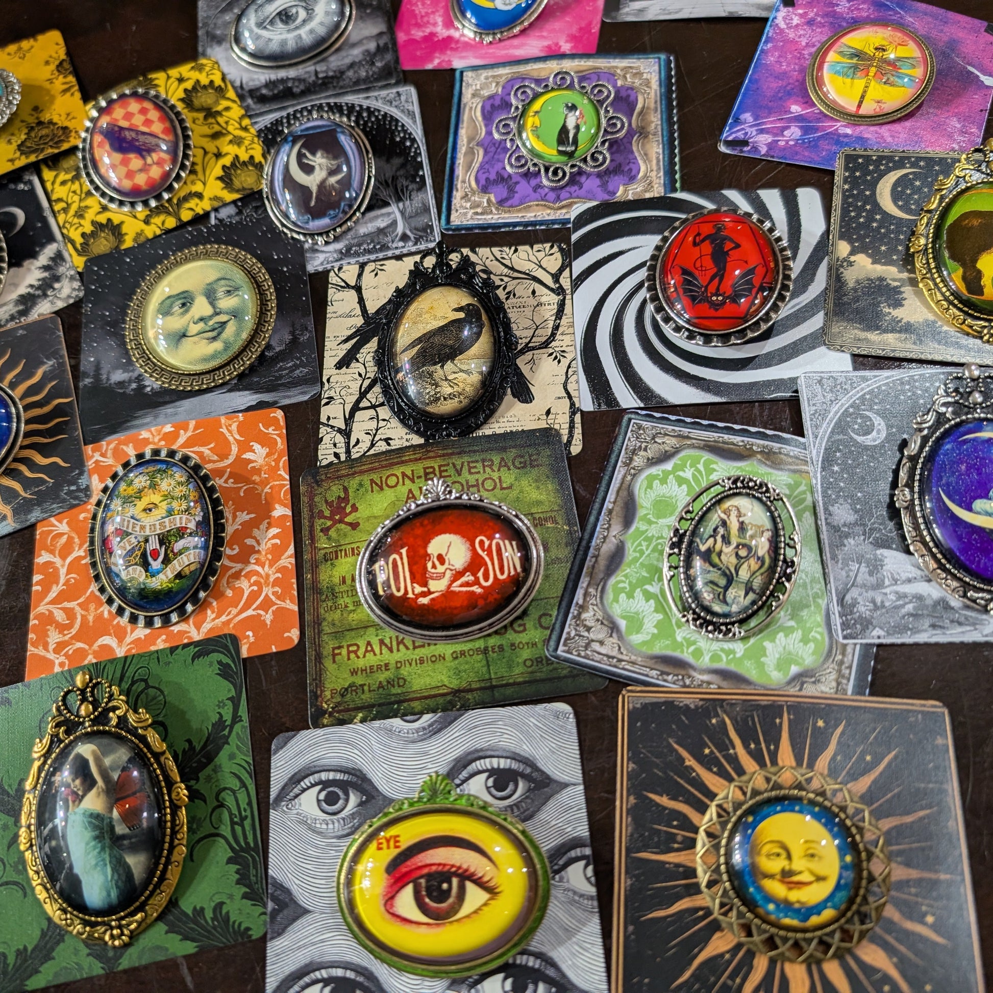 Please note: all designs are different! If ordering online, you will receive one brooch in a random design. If one design in particular caught your eye, feel free to shoot us a note and we'll do our best to accommodate, subject to availability!