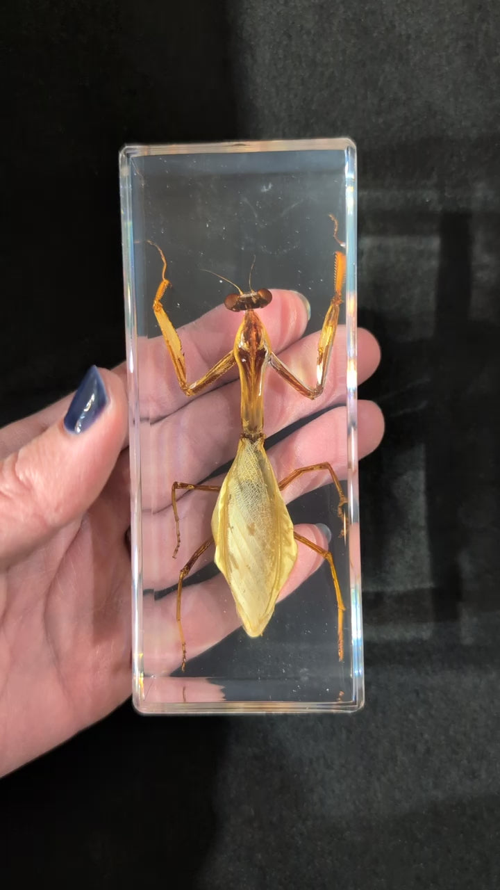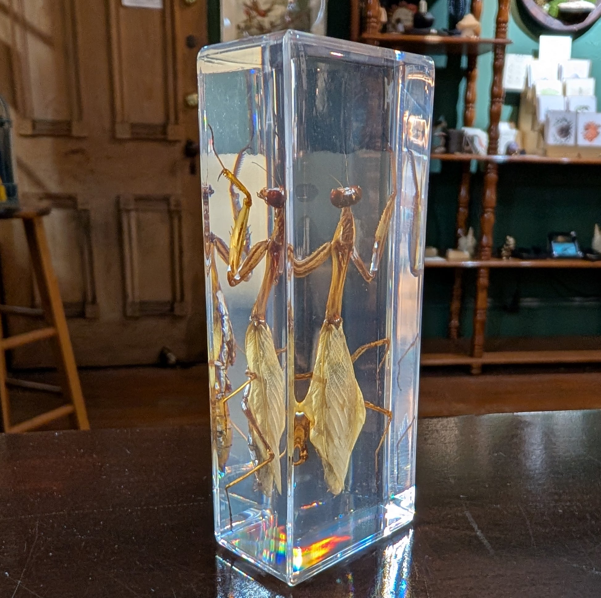 Stunning praying mantis, preserved in all its glorious 3D detail in hard, clear resin. Makes a great gift for an entomology enthusiast!