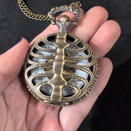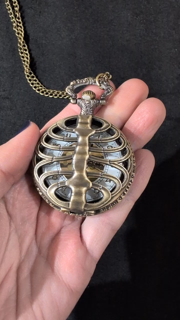 This pocket watch blends steampunk, anatomy, and Victorian style into a handsome piece of jewelry. A conversation starter and a practical timepiece.