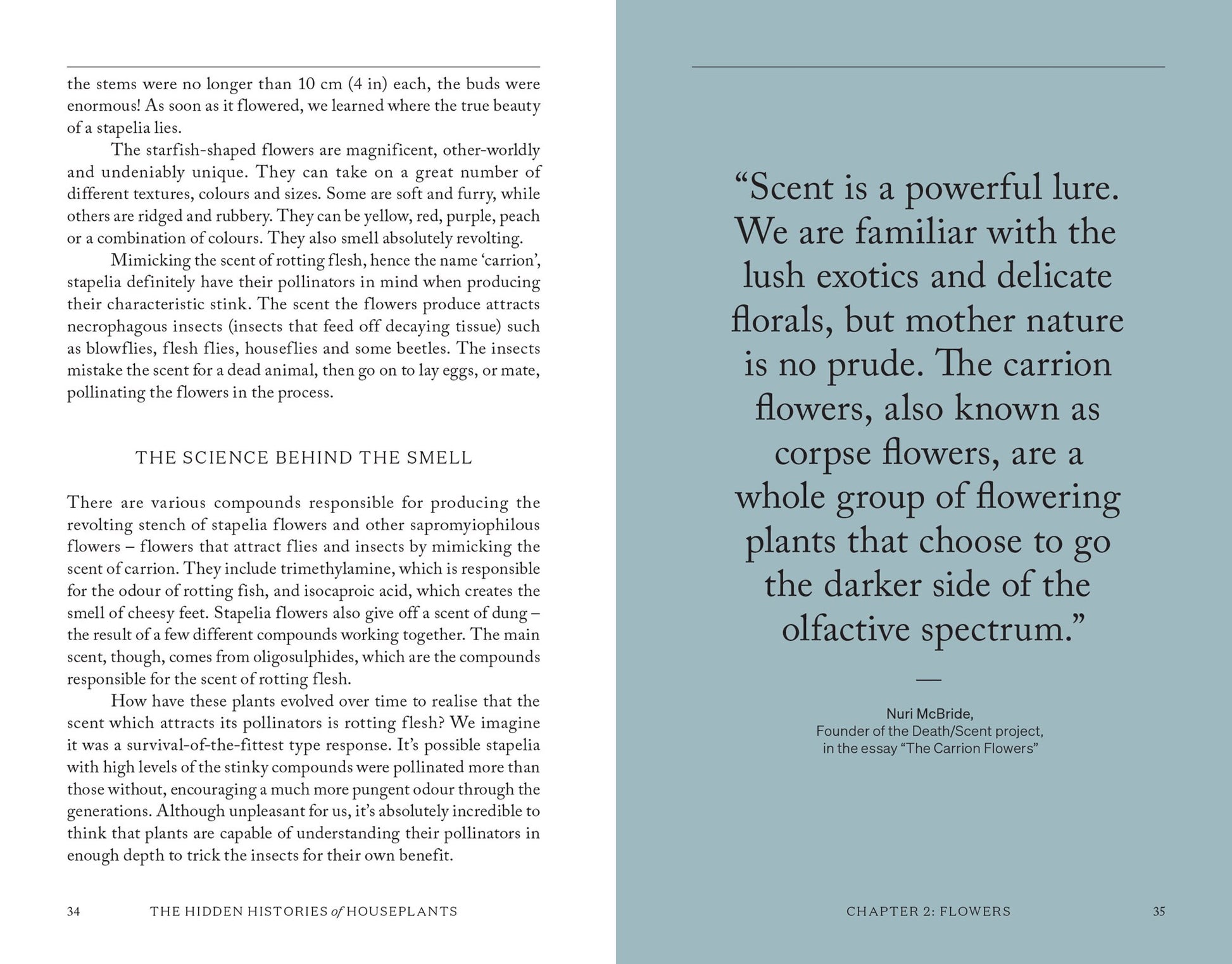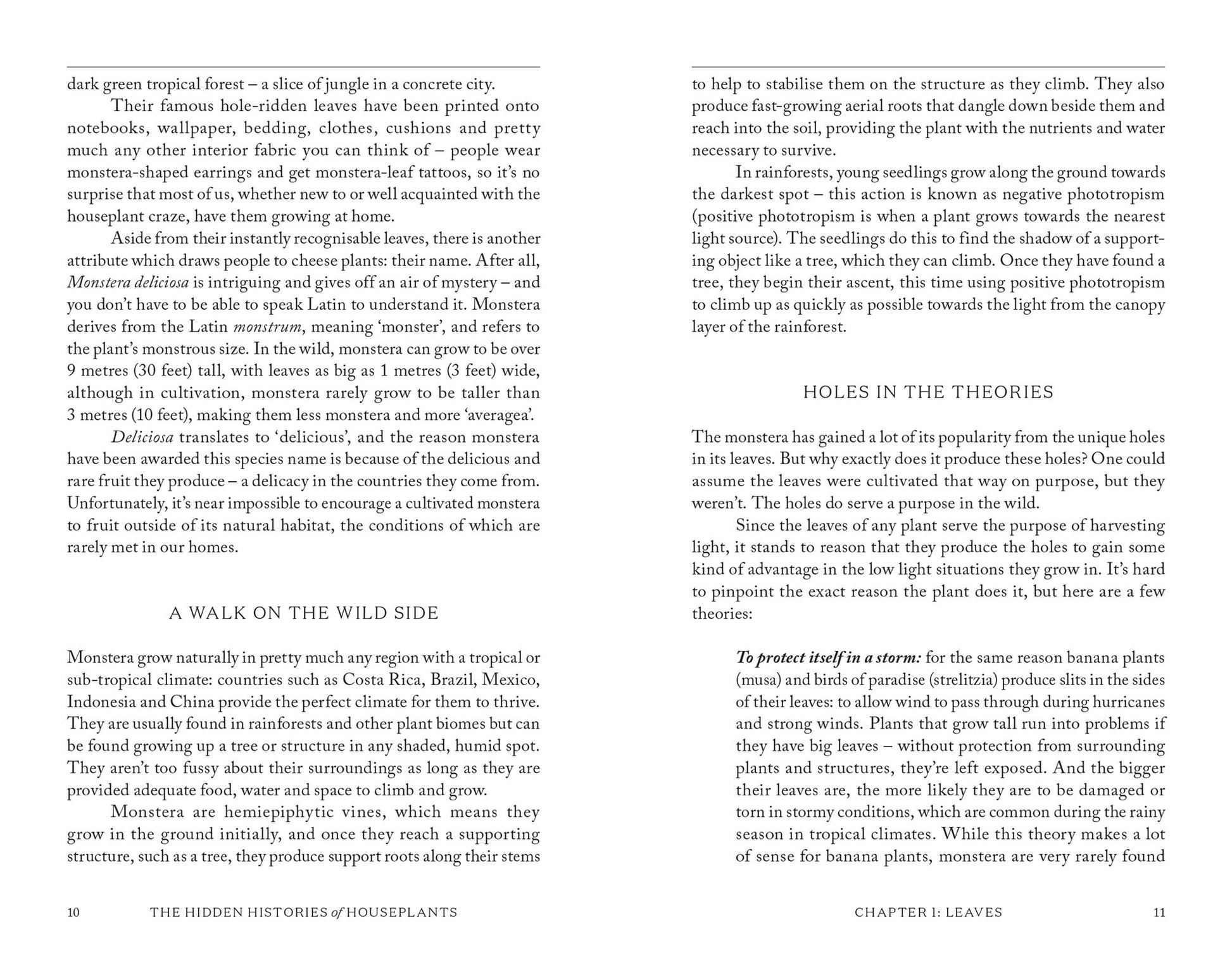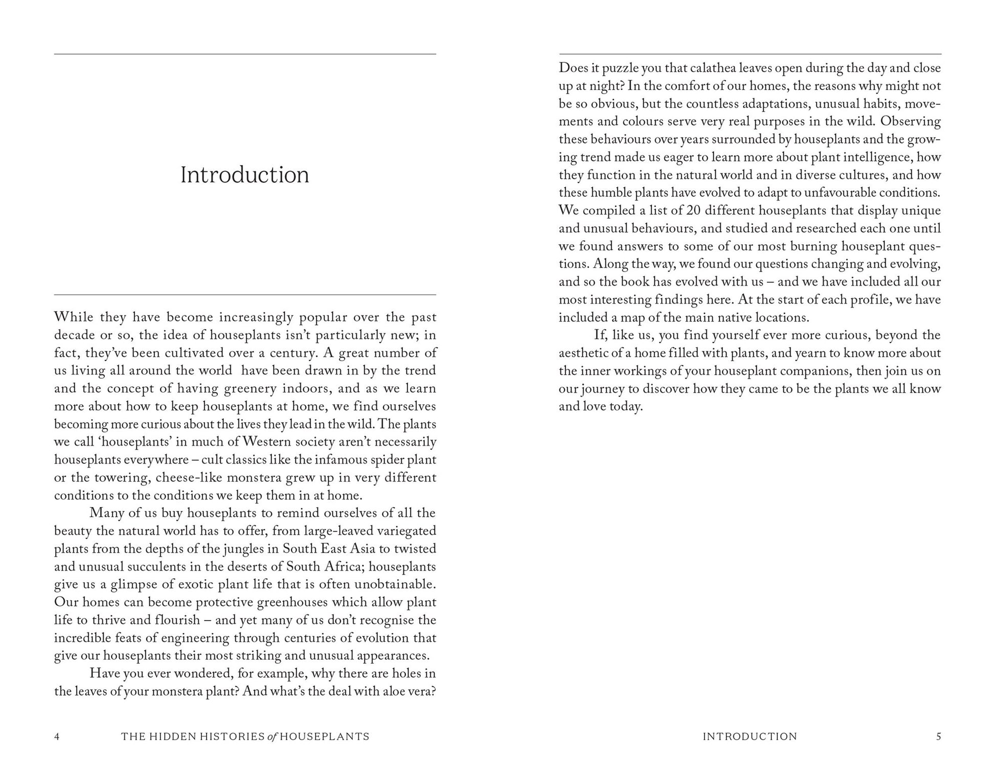 This book isn't just a dry exploration of historical cultivation; the narrative explores the plants' places in social history, science and culture, showcasing the most fascinating elements of each plant's story, be it the exploration as to why Monstera deliciosa have holes in their leaves, whether houseplants have the ability to count, or why Calathea leaves open during the day and close up at night.